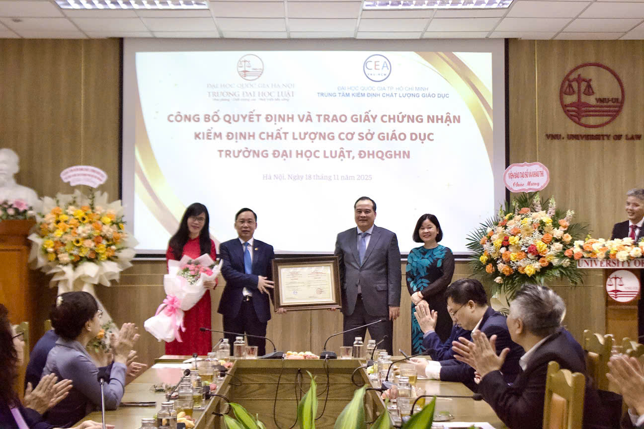 Lễ công bố Quyết định và trao Giấy chứng nhận kiểm định chất lượng cơ sở giáo dục Trường Đại học Luật, ĐHQGHN