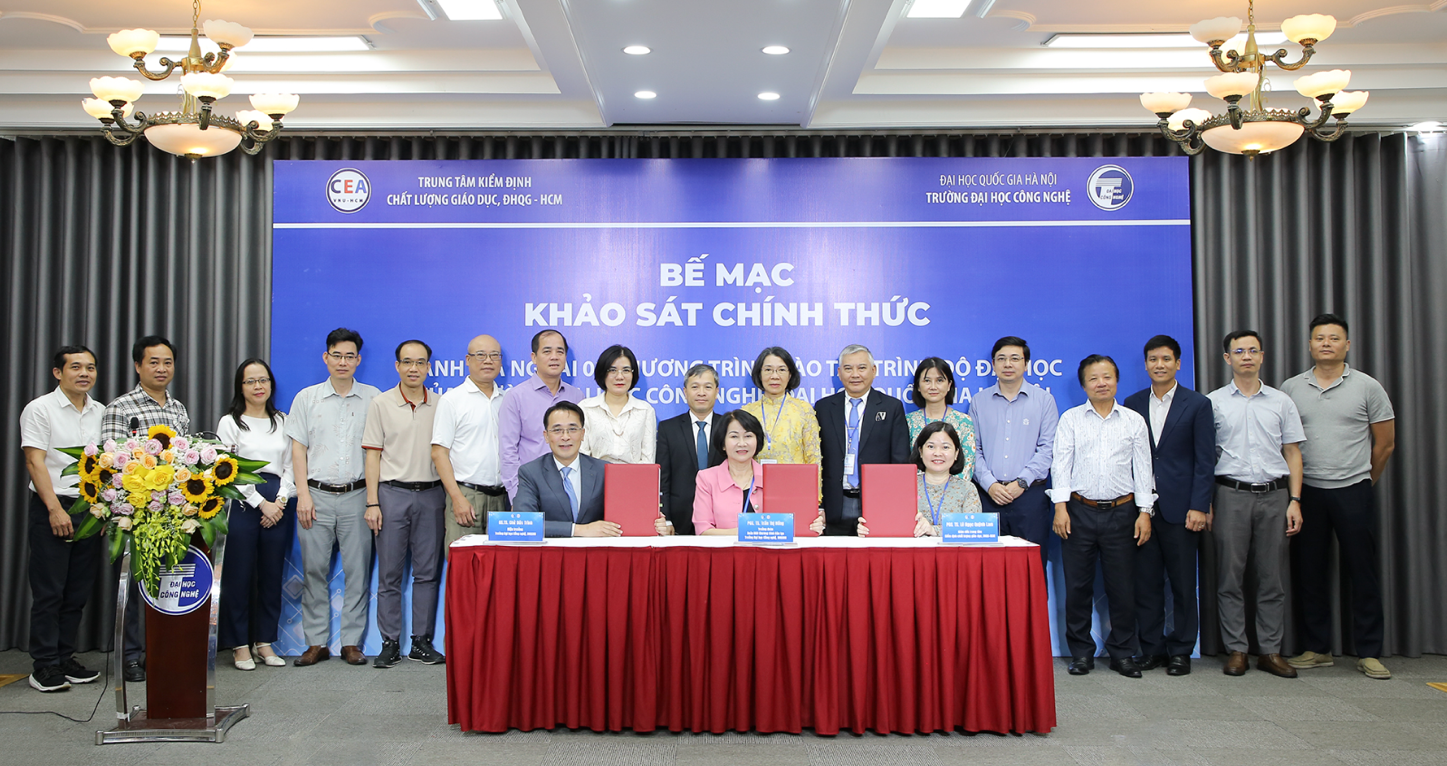 At the end of the closing session, representatives of the Assessment Team, the Center and VNU University of Engineering and Technology signed the Minutes of Completion of the official site visit in the presence of the Assessment Team experts and leaders of departments, lecturers and students of the faculties/departments whose training programs were evaluated.