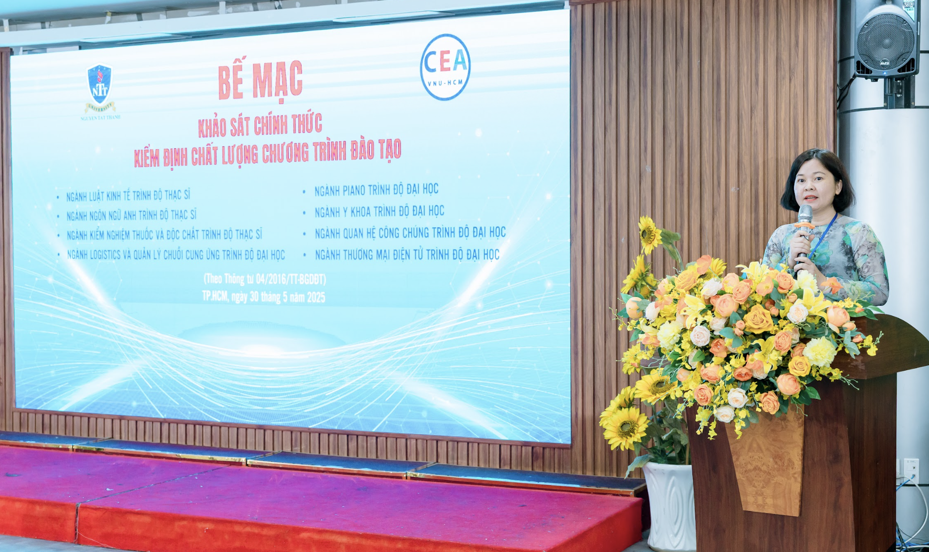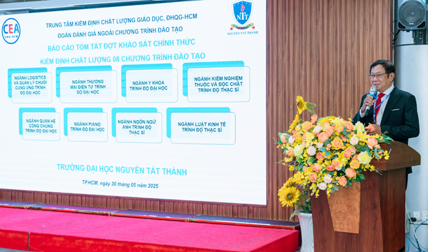 The closing ceremony, held in the afternoon of May 30th, 2025, the representative of the Assessment Team presented a summary report on the survey results of 08 programs of Nguyen Tat Thanh University. In addition to recognizing the strengths, the Assessment Team also made recommendations to help the University develop a plan to improve and enhance the quality of training in the coming time, in order to better ensure the rights of learners.