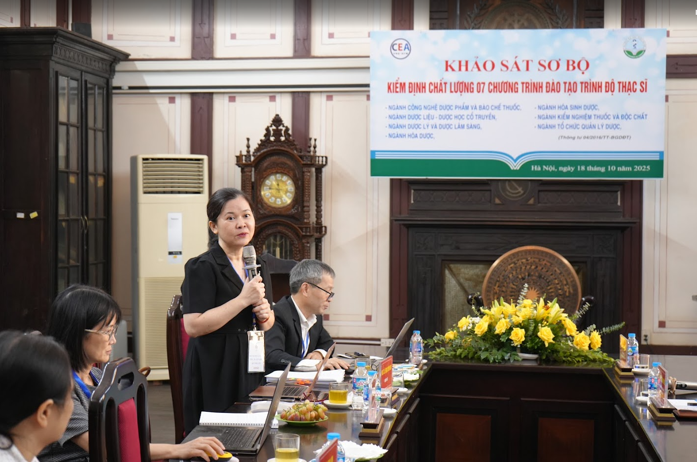 Vào ngày 18/10/2025, Đoàn đánh giá ngoài của Trung tâm Kiểm định chất lượng giáo dục ĐHQG-HCM đã tiến hành khảo sát sơ bộ đối với 07 chương trình đào tạo trình độ thạc sĩ tại Trường Đại học Dược Hà Nội, cụ thể: