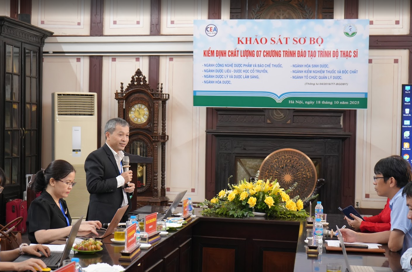 Vào ngày 18/10/2025, Đoàn đánh giá ngoài của Trung tâm Kiểm định chất lượng giáo dục ĐHQG-HCM đã tiến hành khảo sát sơ bộ đối với 07 chương trình đào tạo trình độ thạc sĩ tại Trường Đại học Dược Hà Nội, cụ thể: