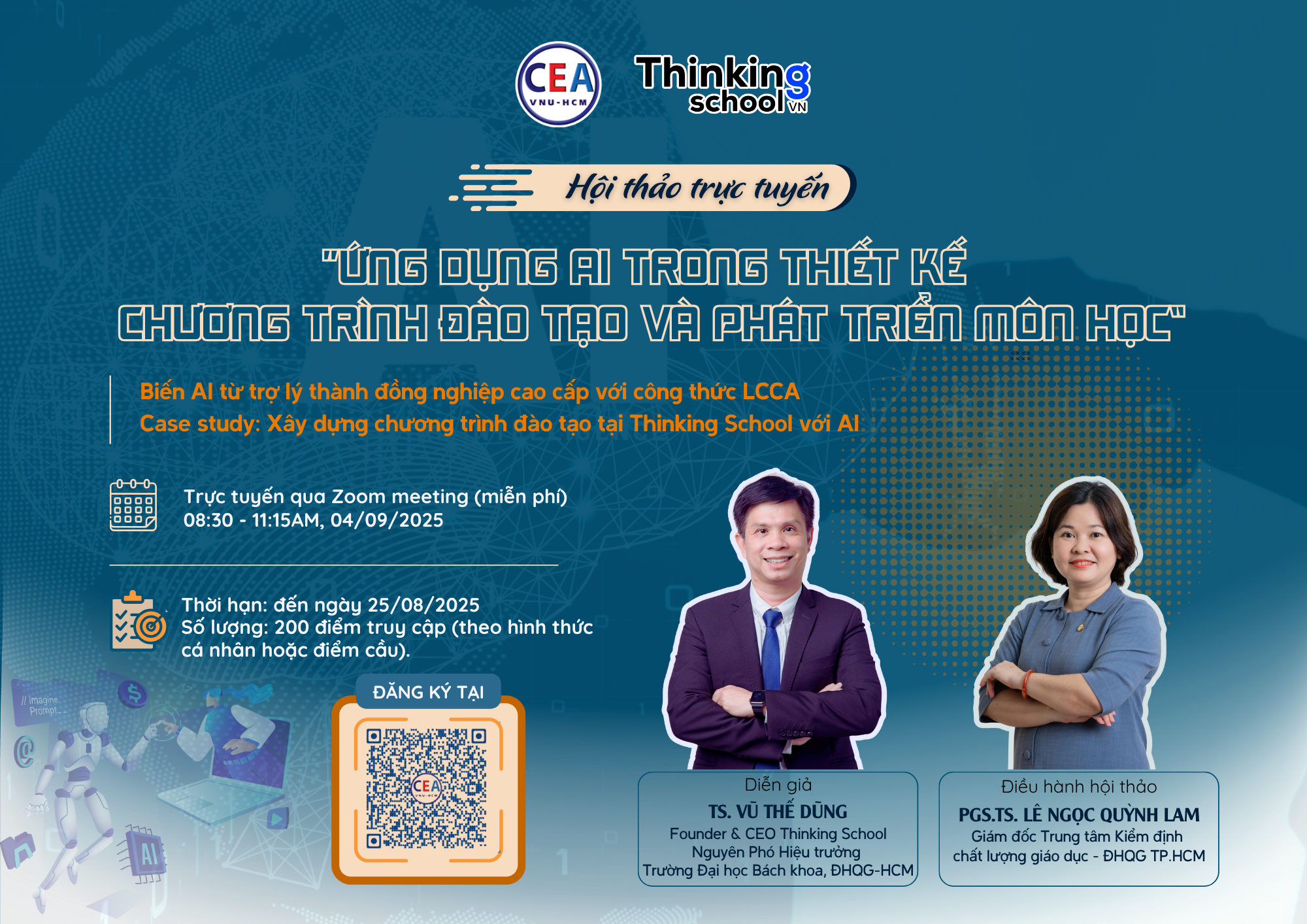 - Diễn giả: TS. Vũ Thế Dũng, Founder & CEO Thinking School, Nguyên Phó Hiệu trưởng trường Đại học Bách khoa, ĐHQG-HCM.